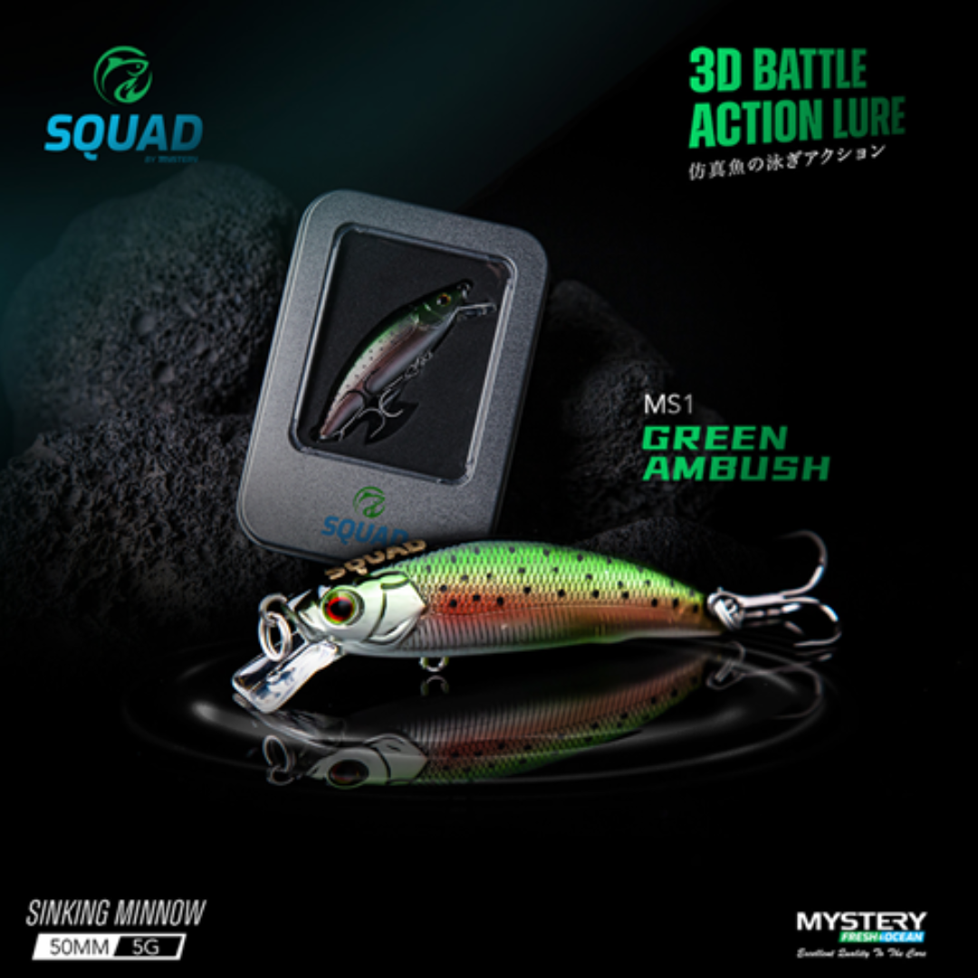 Sinking minnow with 50mm in length and 5g in weight. Suitable for ultralight and finesse game.