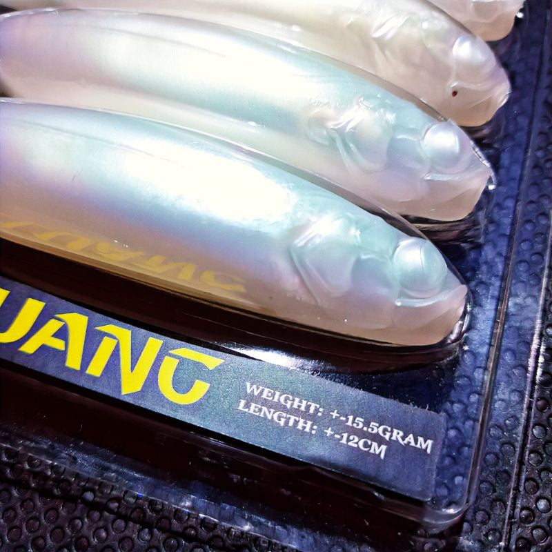 Introducing Seluang Soft Plastic for Toman by Gladius - a soft plastic bait specifically designed for giant snakehead fishing. Made from high quality TPR plastic for optimal softness and durability. At 12cm in length and 15.5g in weight, this floating bait is perfect for targeting the elusive toman. Available in white and black.